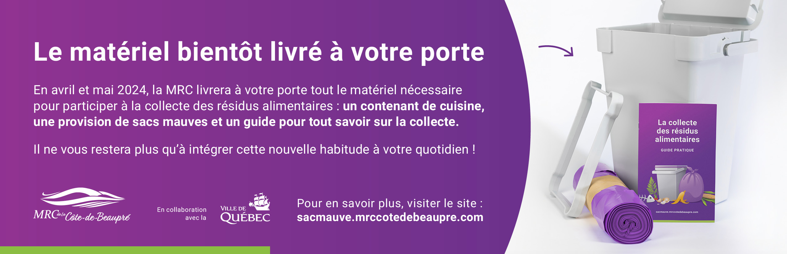 Pour plus d’information, visitez le sacmauve.mrccotedebeaupre.com